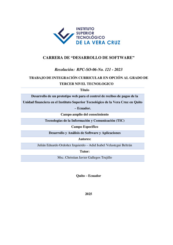 , “Desarrollo de un prototipo web para el control de recibos de pagos de la Unidad financiera en el Instituto Superior Tecnológico de la Vera Cruz en Quito – Ecuador.,” ISTVC, consulta 14 de febrero de 2026, https://repositorios.istvc.edu.ec/items/show/4.