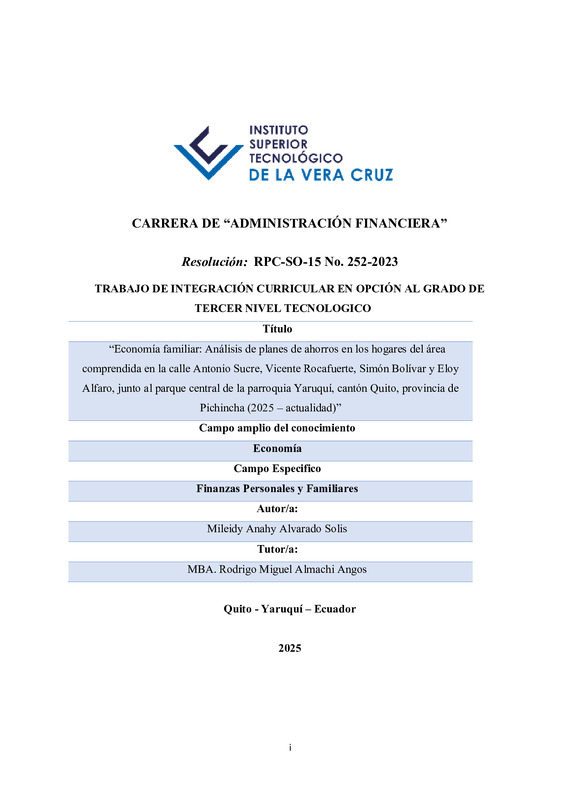 Mileidy Anahy Alvarado Solis, “Economía familiar: Análisis de planes de ahorros en los hogares del área comprendida en la calle Antonio Sucre, Vicente Rocafuerte, Simón Bolívar y Eloy
